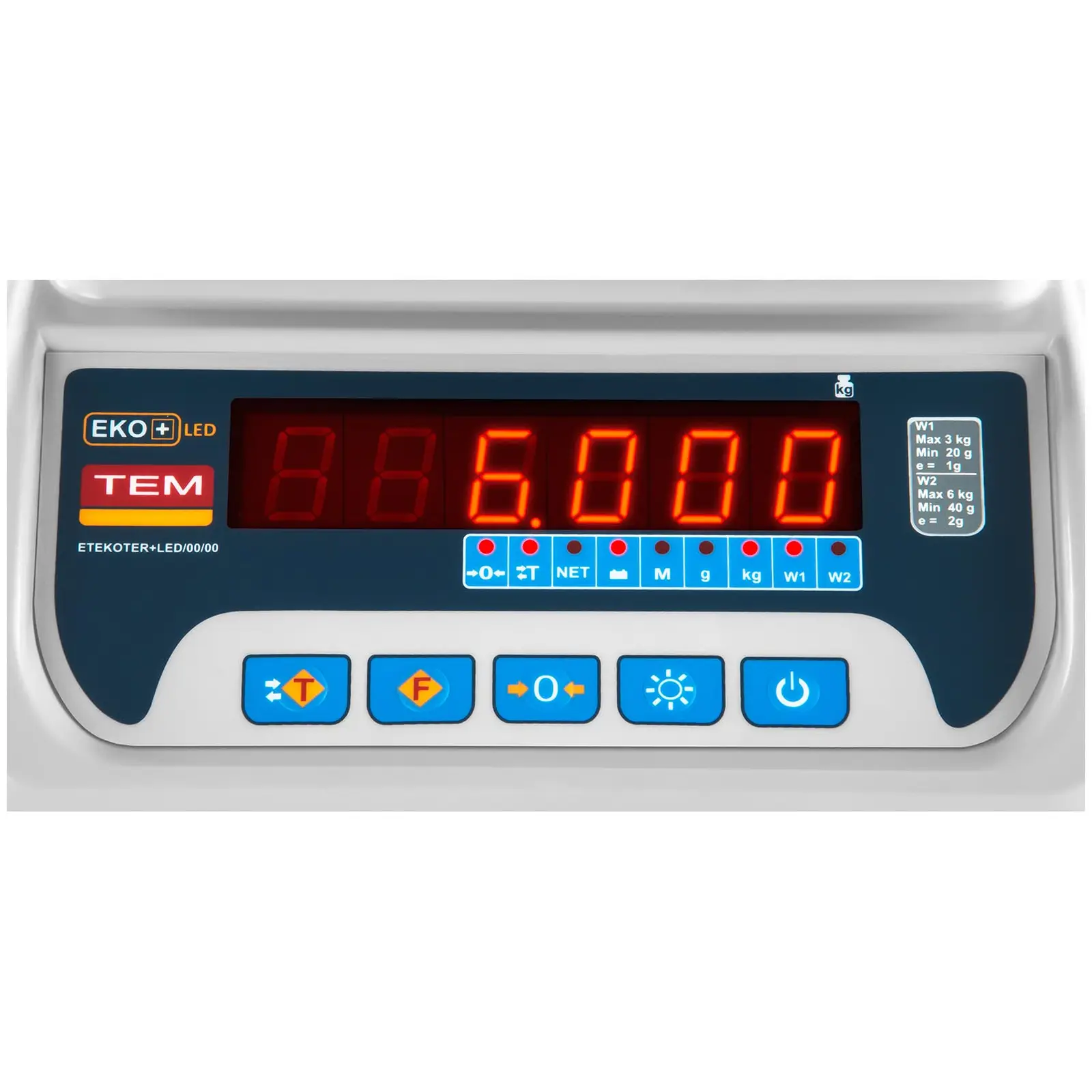 Butiksvægt – 3 kg/1 g – 6 kg/2 g – LED
