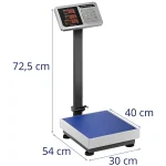 Målene på 54 x 30 x 72,5 cm gør vægten relativt kompakt og nem at placere i forskellige arbejdsmiljøer, samtidig med at den tilbyder en stabil platform til vejning. Den vejer kun 7,4 kg, hvilket gør den let at flytte og transportere, hvis den skal bruges på flere steder i en lagerbygning eller et produktionsanlæg. De kompakte dimensioner gør også vægten ideel til steder, hvor der ikke er meget plads.