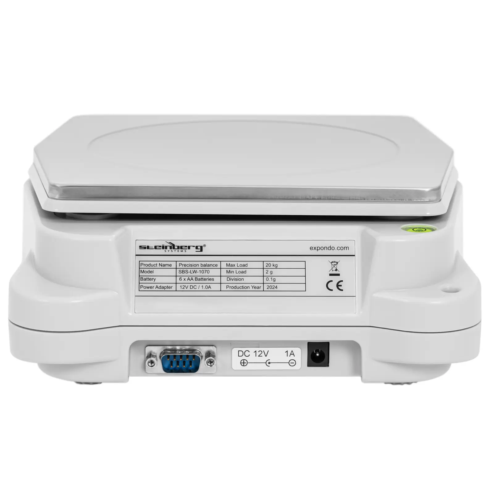 Desuden er vægten udstyret med en RS232-port, der giver mulighed for at tilslutte vægten til eksterne enheder som computere eller printere. Denne funktion er især nyttig i professionelle indstillinger, hvor data skal indsamles, analyseres eller udskrives til videre behandling. Det giver mulighed for at integrere vægten i større systemer og arbejdsprocesser, hvilket kan hjælpe med at optimere og strømline operationer.