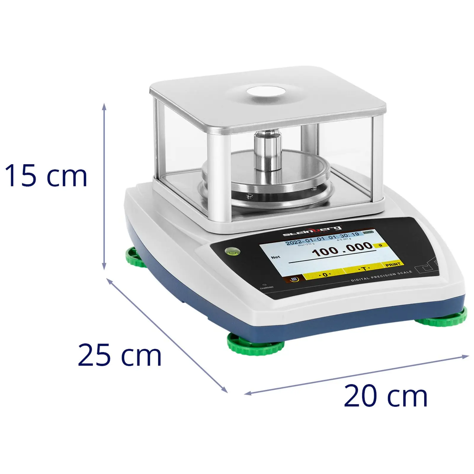 Denne præcisionsvægt er designet med en række funktioner, der gør den både alsidig og effektiv. LCD-touchscreen-displayet gør det muligt at styre vægten med enkle berøringer, hvilket sikrer nem adgang til alle de nødvendige funktioner. Skærmen viser tydeligt dato og klokkeslæt, hvilket kan være praktisk i professionelle miljøer, hvor det er vigtigt at holde styr på tidspunkter for målinger eller optagelse af data.